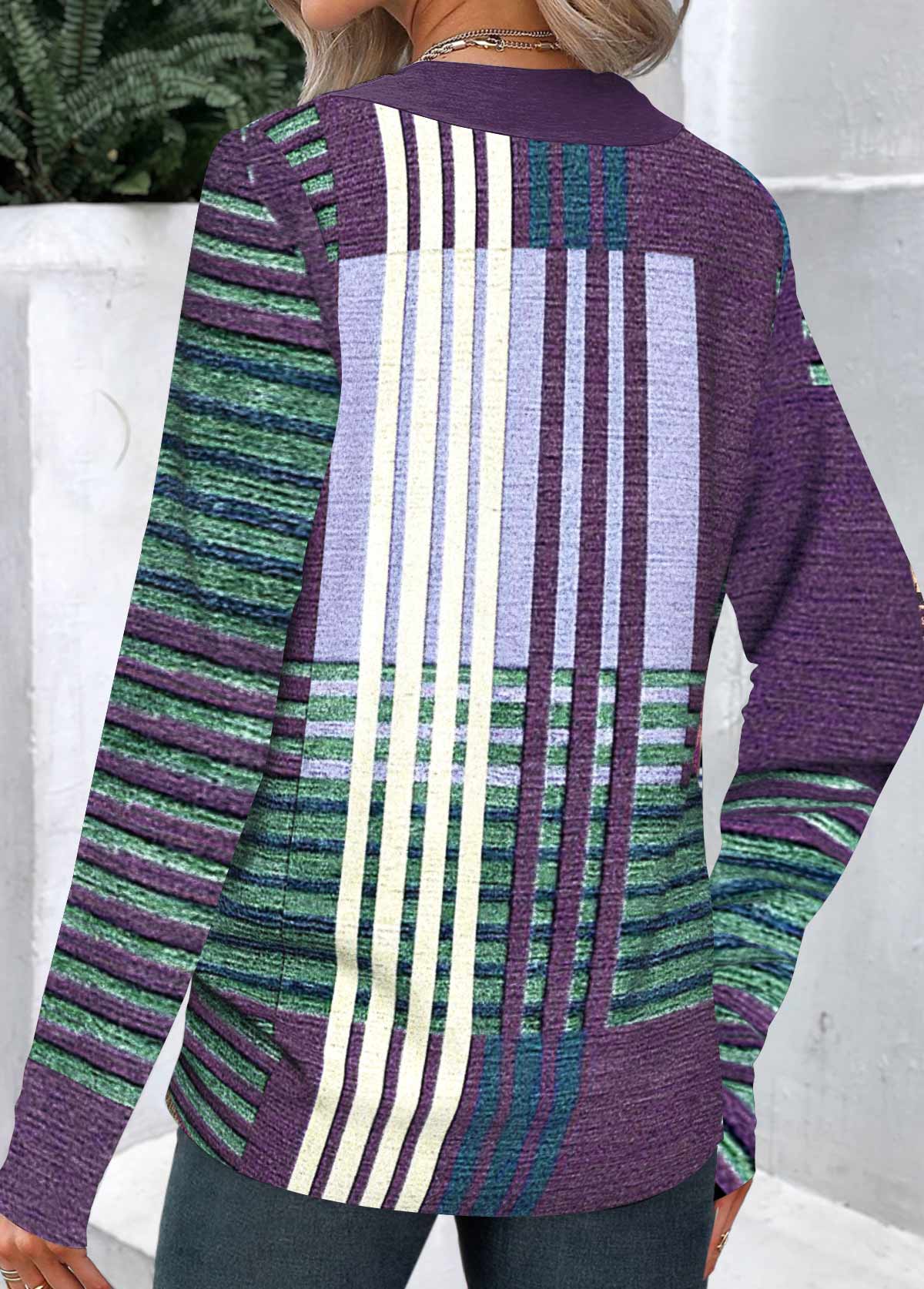 • Patchwork Geometric Print Long Sleeve Asymmetrical Neck T Shirt | thumb picture