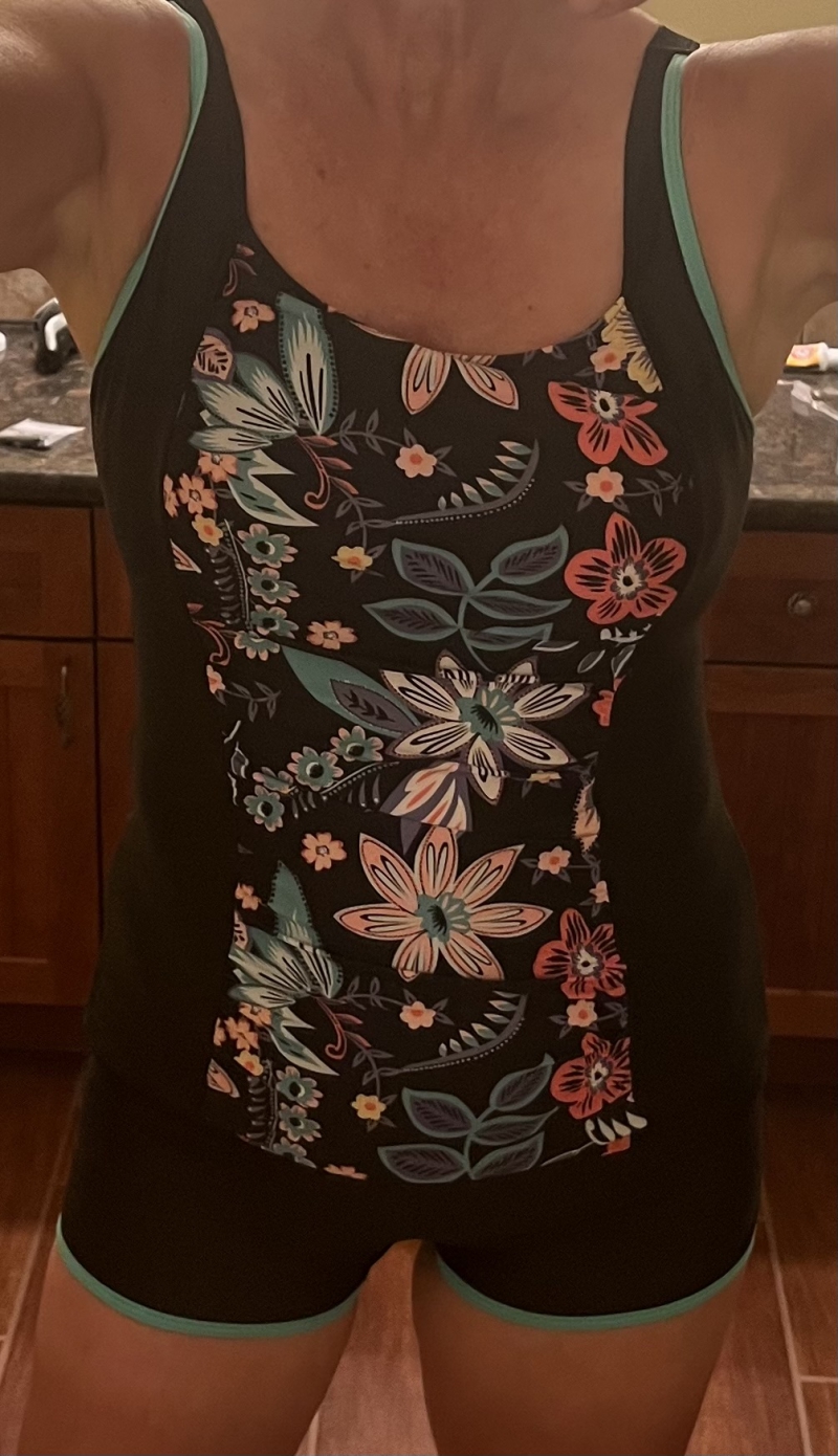 Tummy Coverage Mid Waisted Plants Print Navy Tankini Set