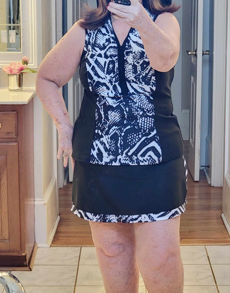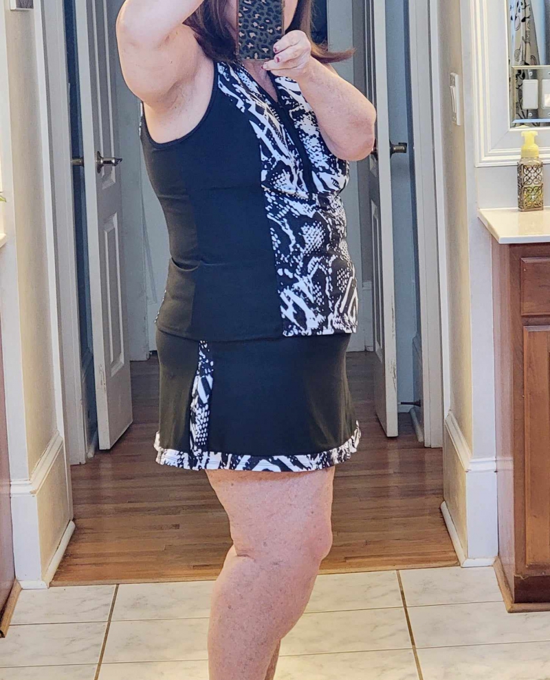 Tummy Coverage Tropical Plants Print Black Tankini Top
