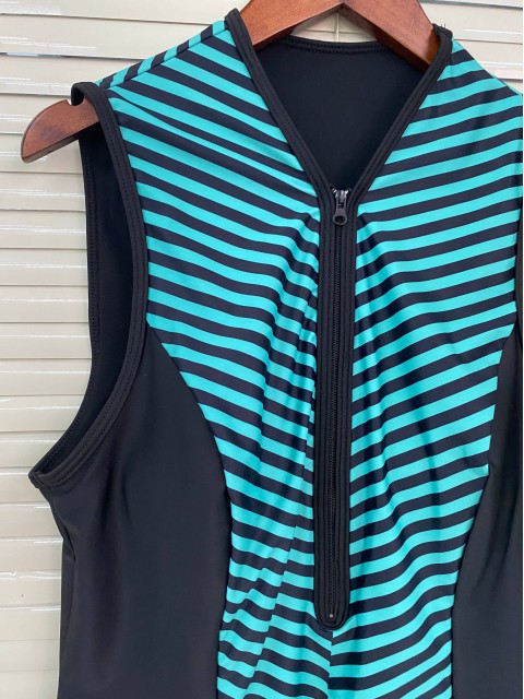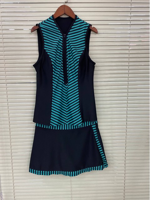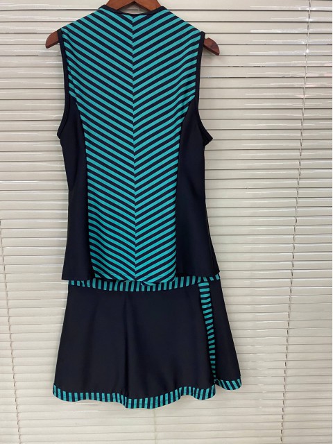Patchwork Mid Waisted Striped Navy Tankini Set