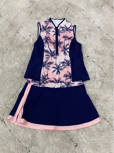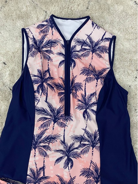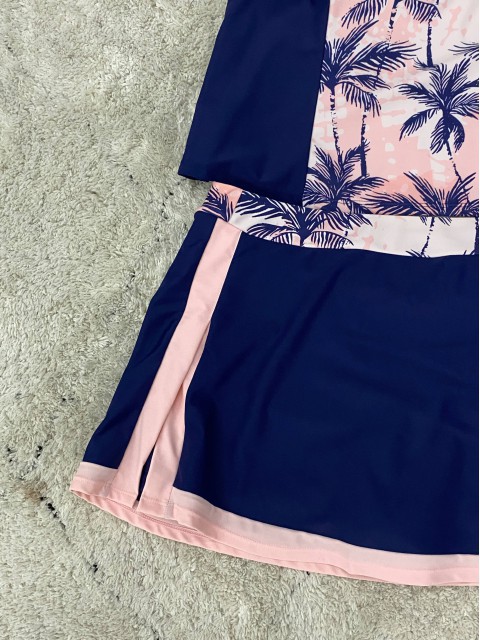 Tummy Coverage Mid Waisted Plants Print Navy Tankini Set