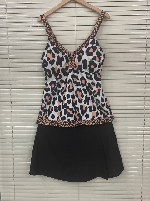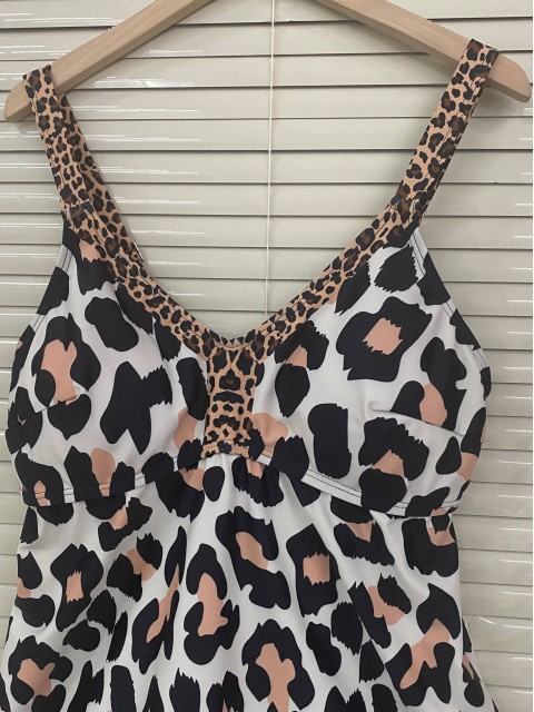 Two Piece Mid Waisted Leopard Red Tankini Set