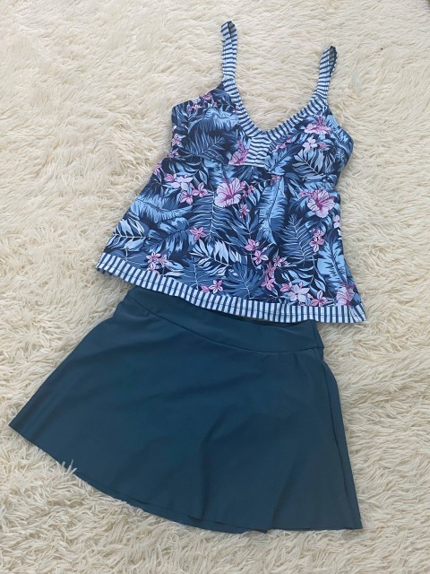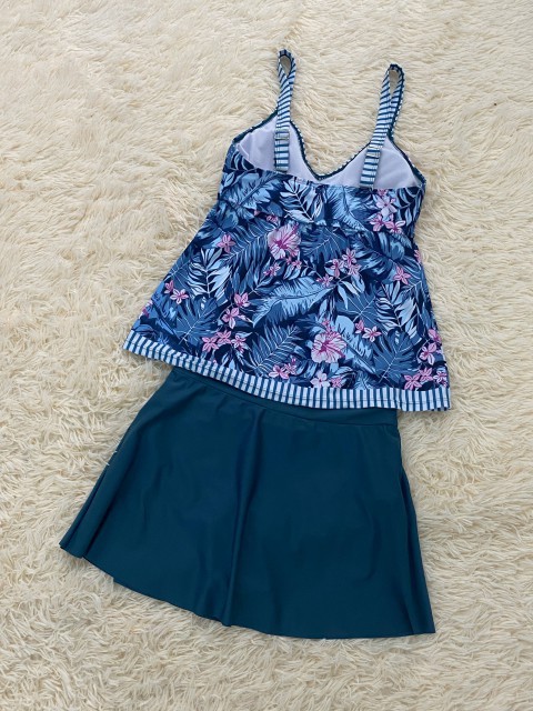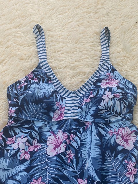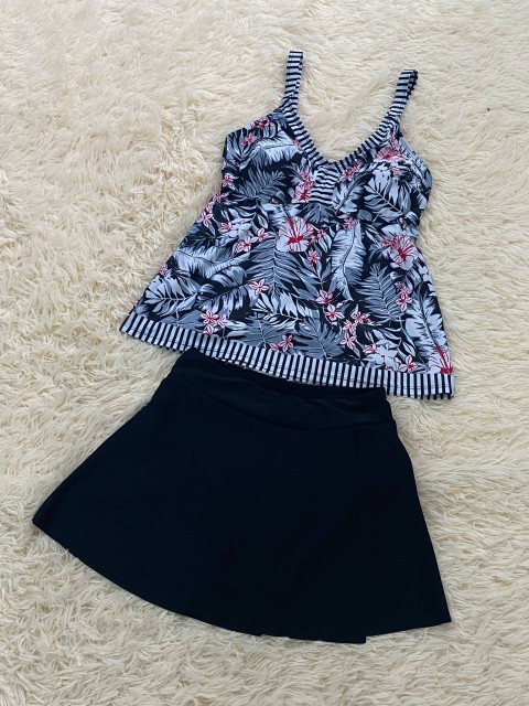 Tummy Coverage Mid Waisted Plants Print Navy Tankini Set