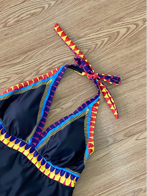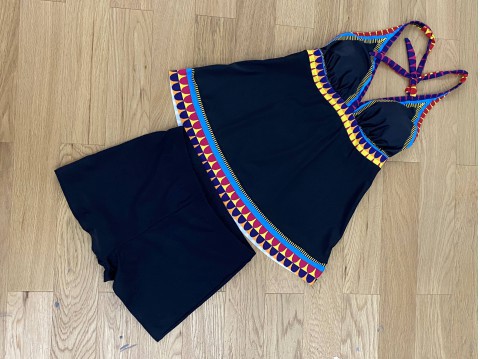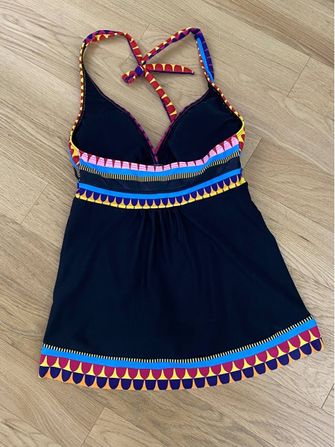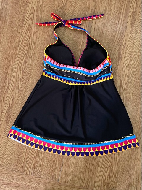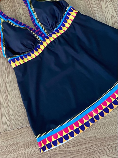 Patchwork Ombre Cyan Double Straps Tankini Top