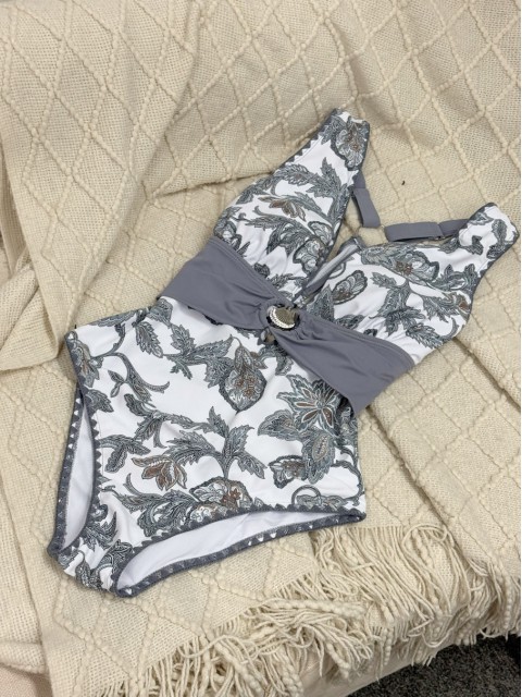 Home  /  Swimwear  /  One Piece Swimwear  /  Patchwork Tribal Print Light Grey One Piece Swimwear