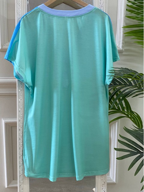 Peacock Blue Curved Hem Long Sleeve T Shirt