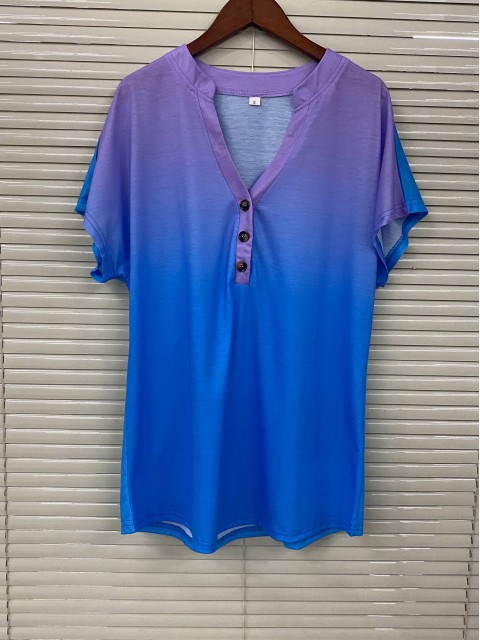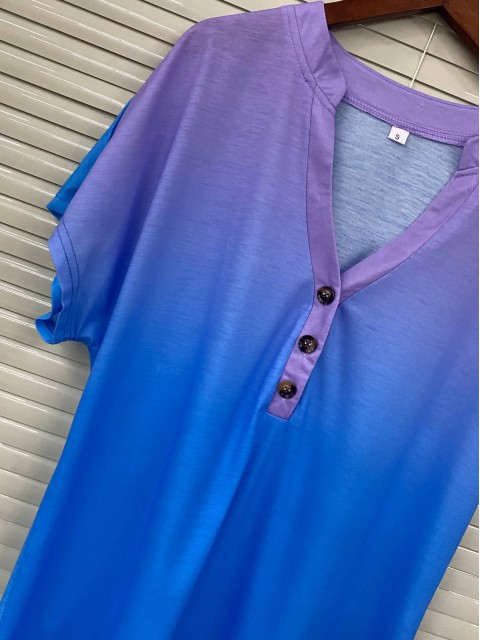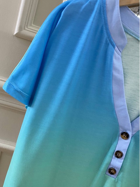 Multi Color Tummy Coverage Ombre Long Sleeve T Shirt