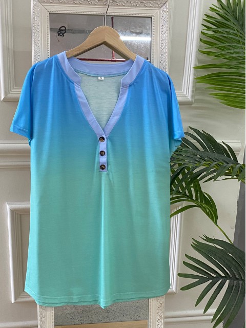 Avocado Green Button Short Sleeve Split Neck Blouse