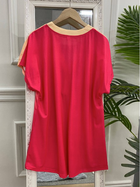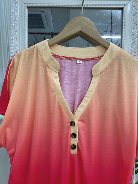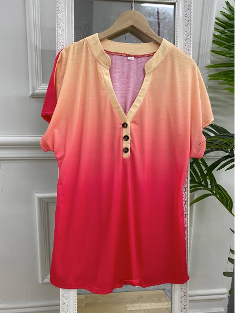 Hot Pink Button Short Sleeve Split Neck Blouse
