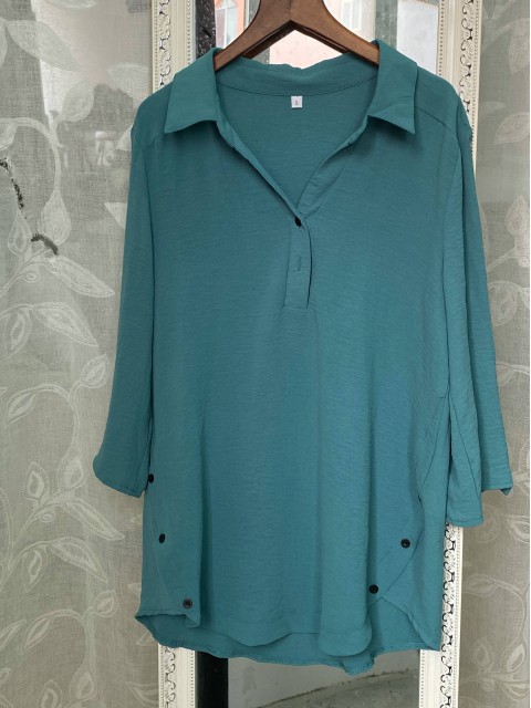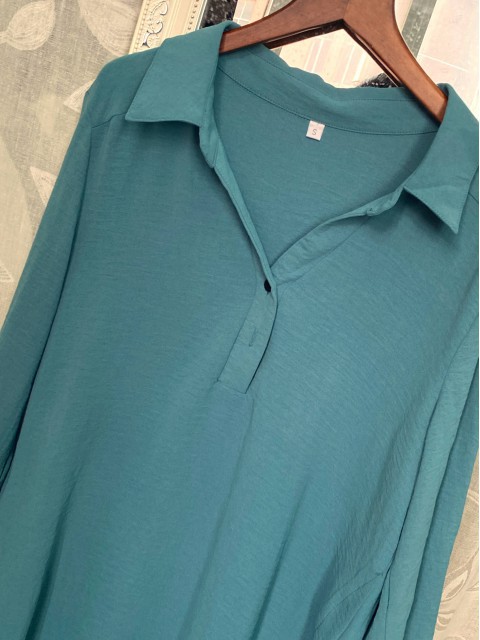 Wine Red Tummy Coverage Long Sleeve Split Neck Blouse