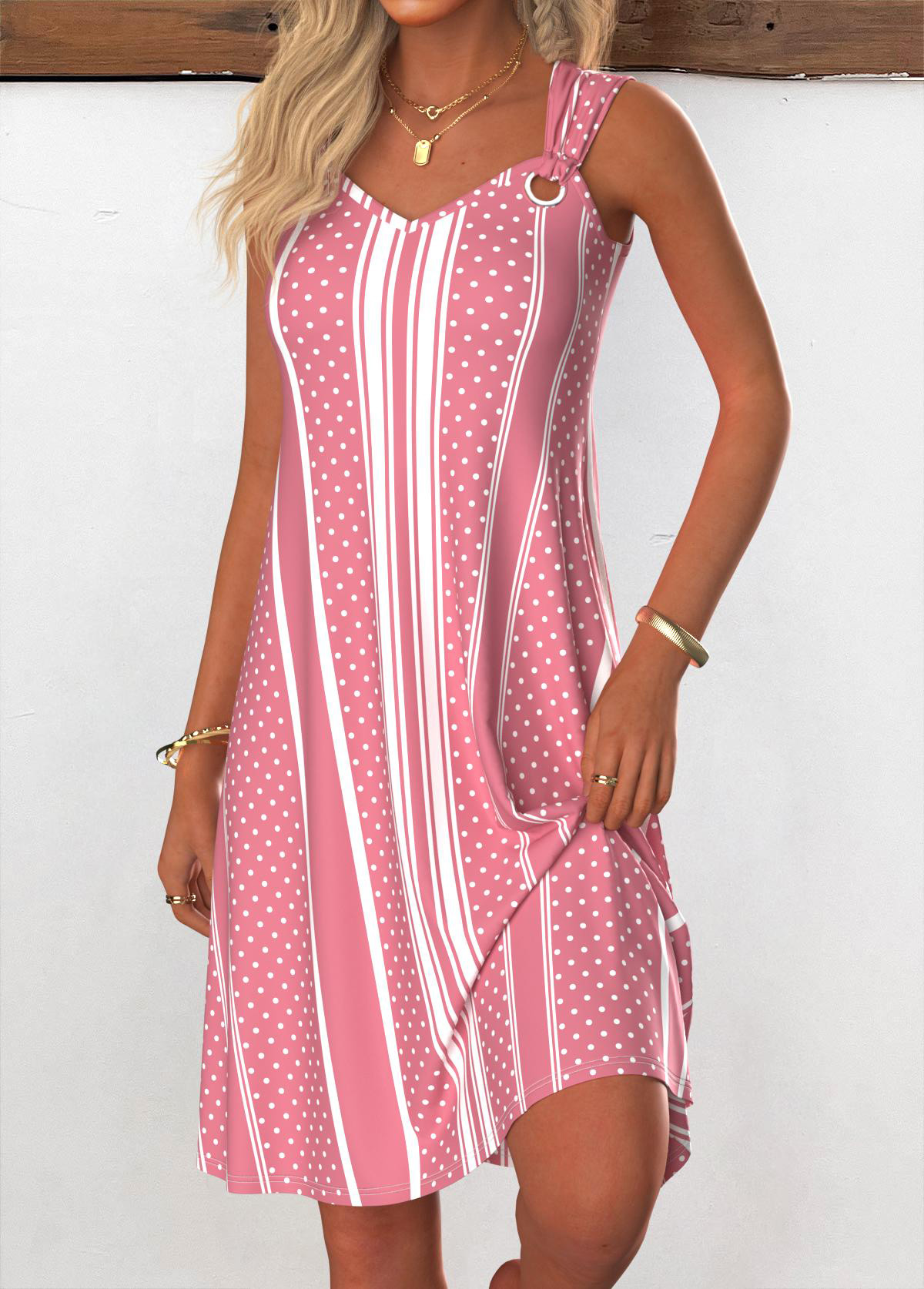 Pink Short Tummy Coverage Sleeveless Round Neck Dress