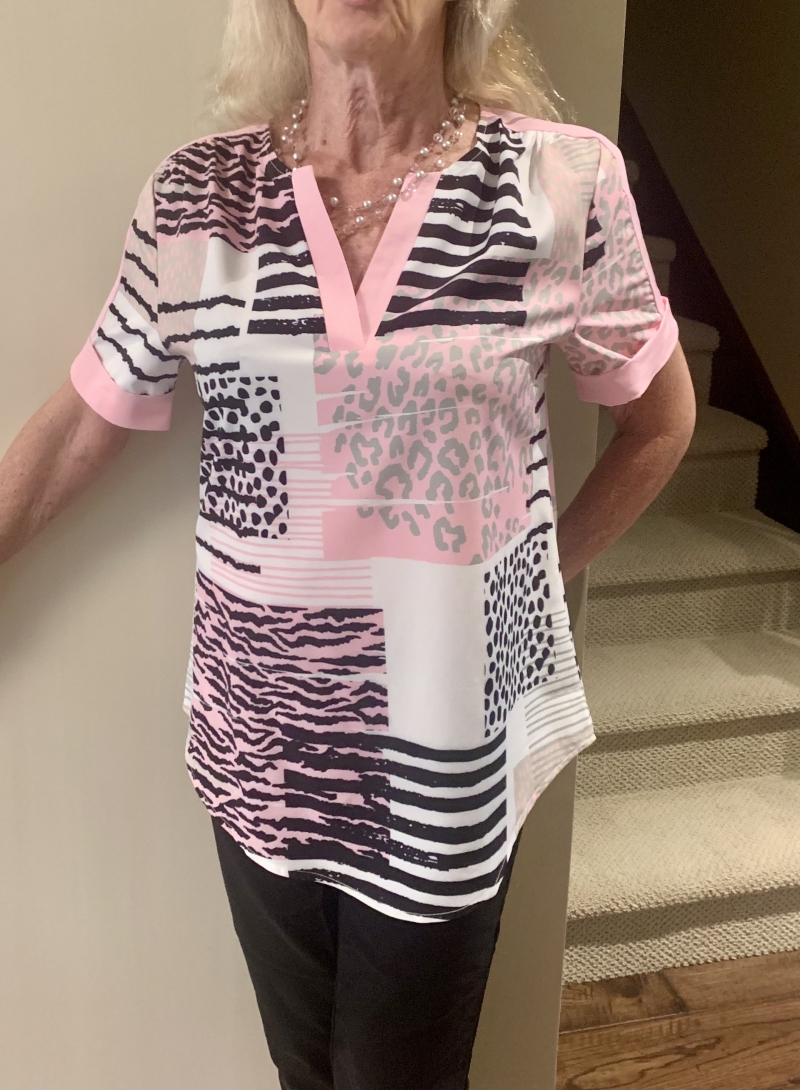 Light Pink Tummy Coverage Dazzle Colorful Print T Shirt