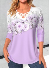 White Tummy Coverage Floral Print Short Sleeve T Shirt