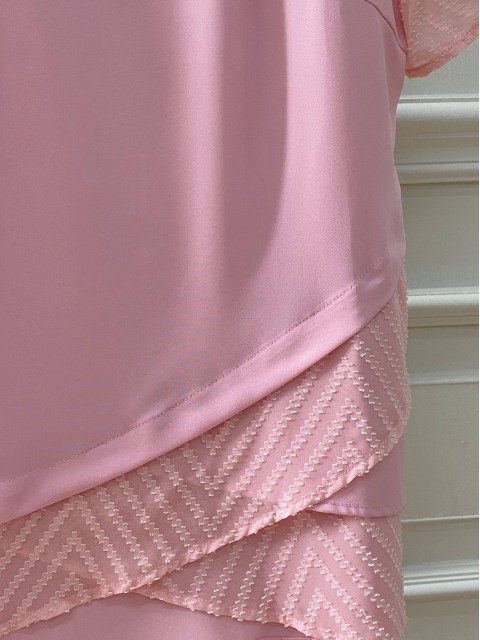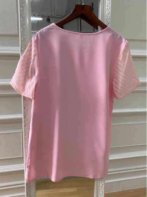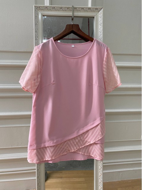 Home  /  Tops  /  Blouses  /  Pink Cross Hem Short Sleeve Round Neck Blouse