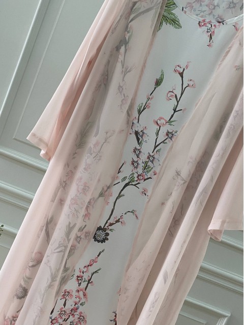 • Pink Floral Print Maxi Long Sleeve Dress and Cardigan | thumb picture