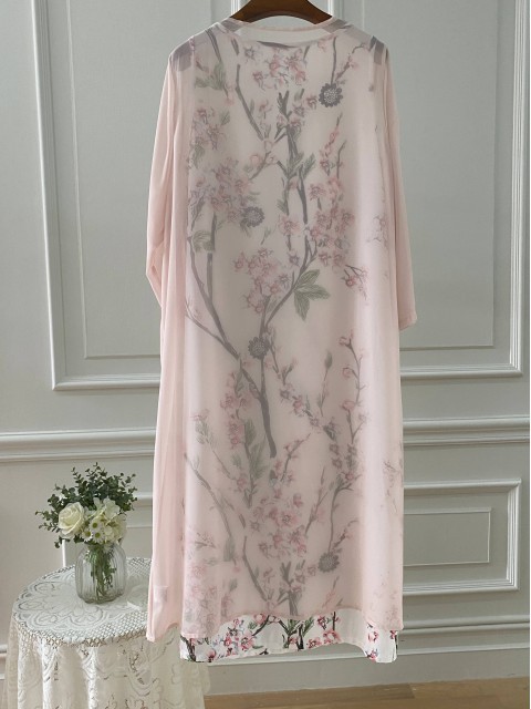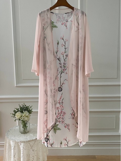 Home  /  Dresses  /  Pink Floral Print Maxi Long Sleeve Dress and Cardigan