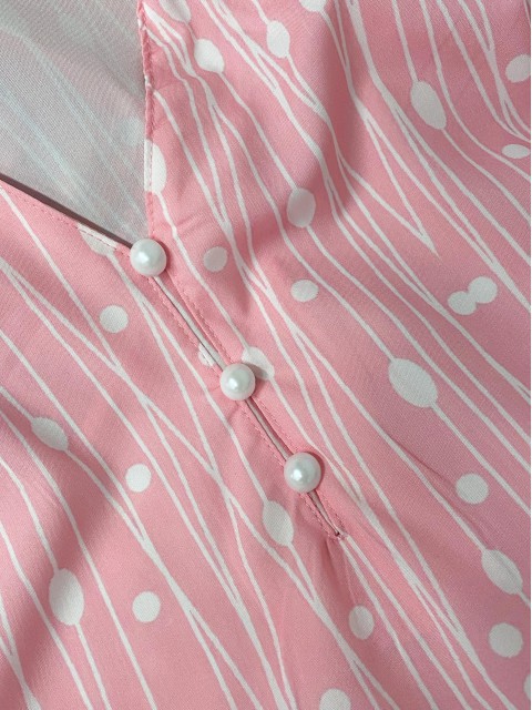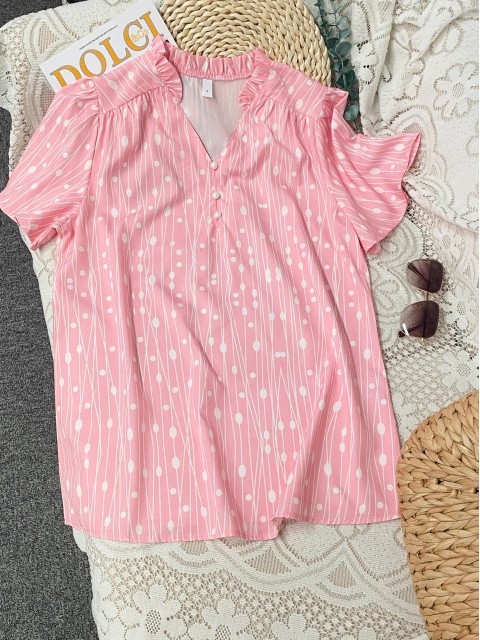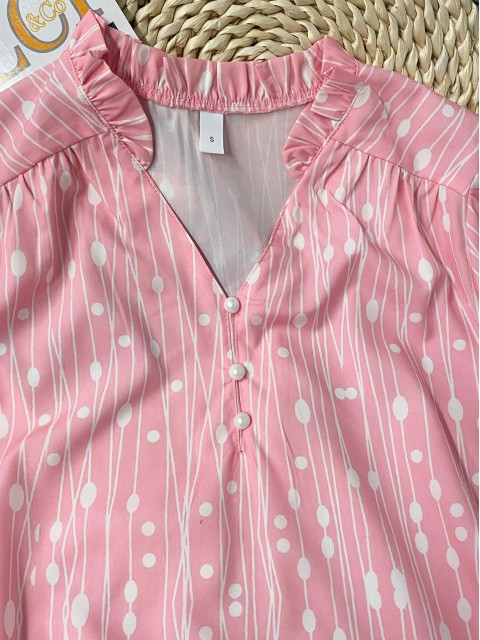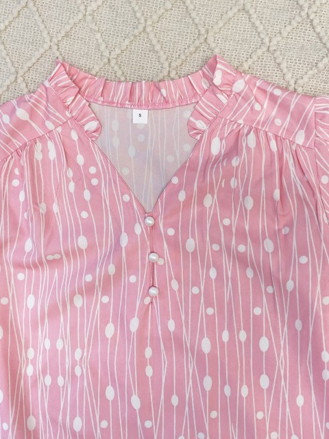 White Polka Dot 3/4 Sleeve V Neck Blouse