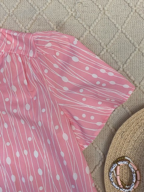 Navy Button Short Sleeve Split Neck Blouse