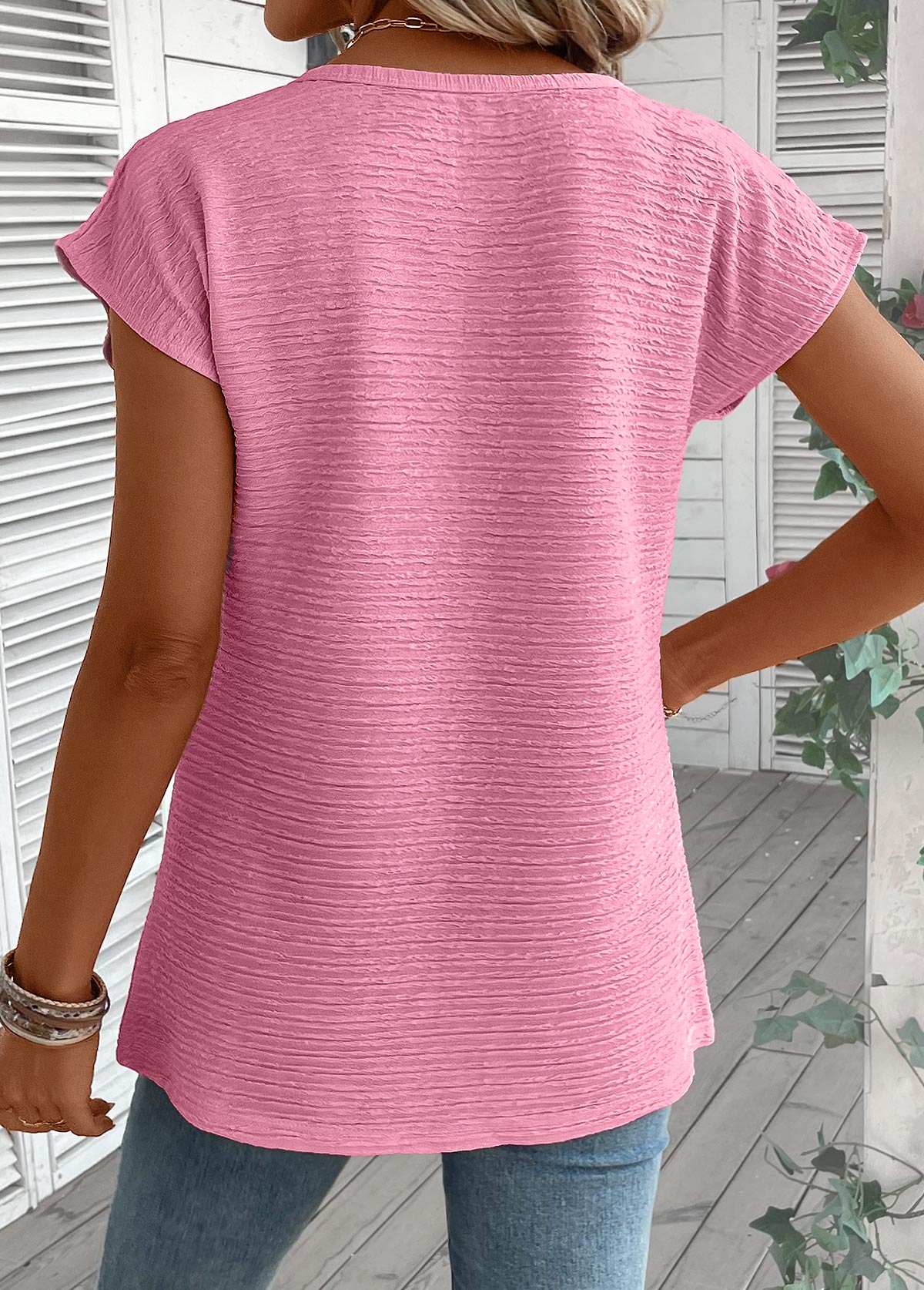 Blue Striped Short Sleeve Split Neck T Shirt