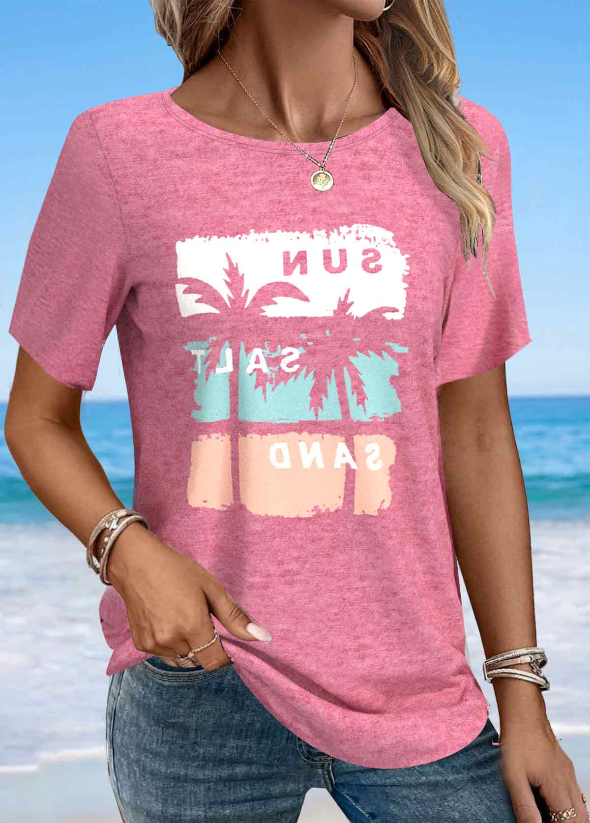 Pink Tropical Plants Print Twist Short Sleeve T Shirt