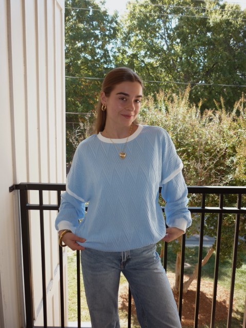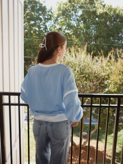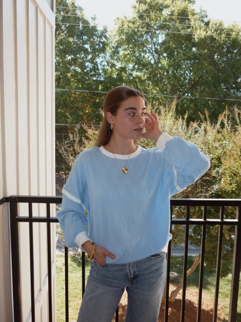 Light Blue Plaid Long Sleeve Turn Down Collar Sweatshirt