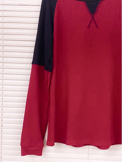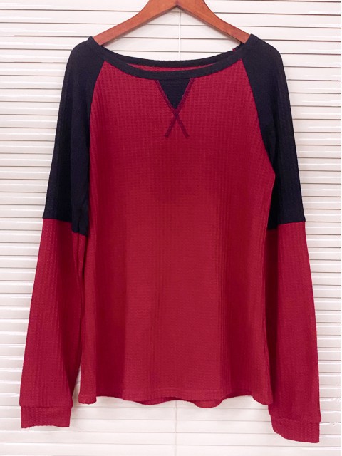 Wine Red Tummy Coverage Long Sleeve Split Neck Blouse