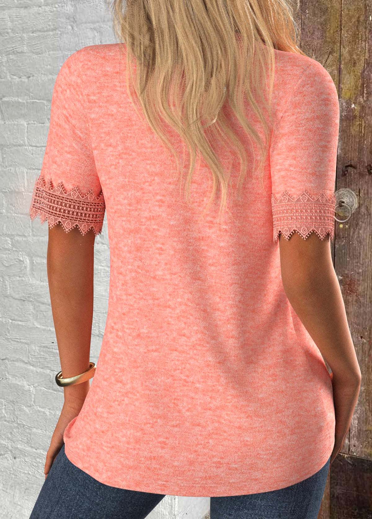 Navy Lace Short Sleeve Tie Collar T Shirt