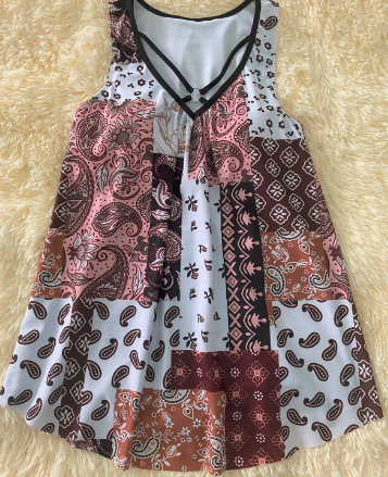 Patchwork Ombre Cyan Double Straps Tankini Top