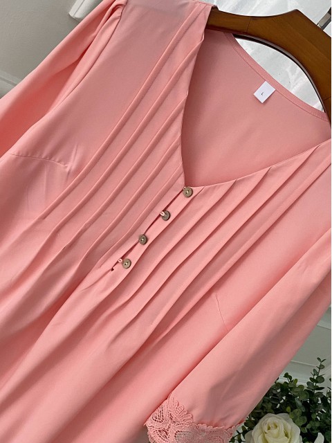 Beige Tummy Coverage Long Sleeve Split Neck Blouse