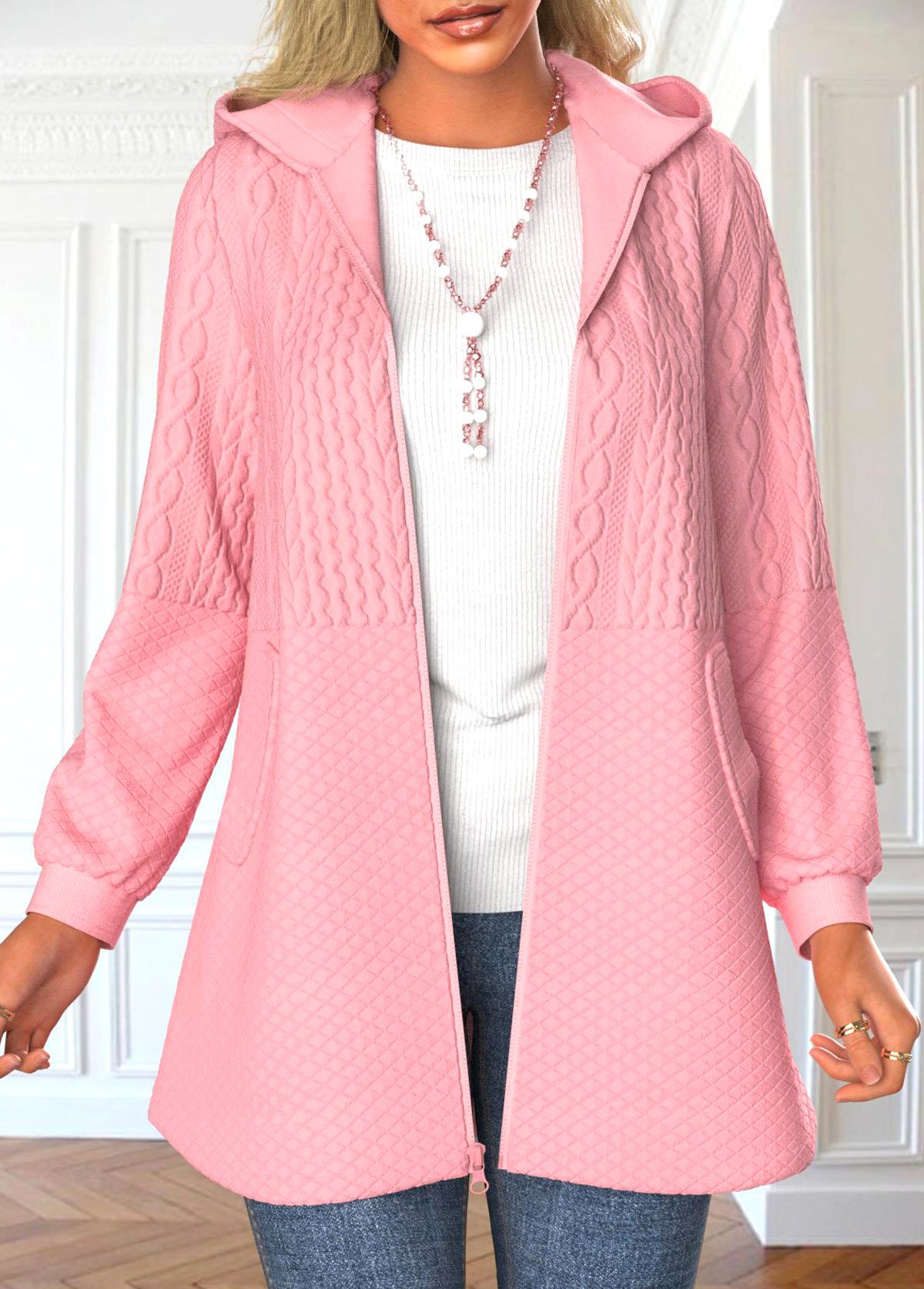 White Crinkled Texture Long Sleeve Jacket