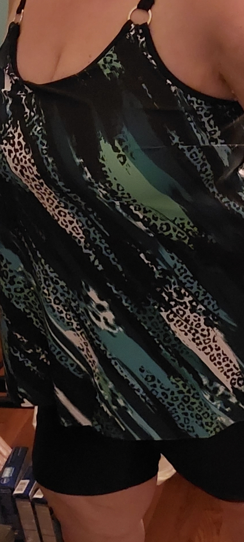 Plus Size Cyan Double Straps Polka Dot Tankini Top