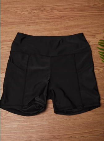 Quick Drying High Waisted Black Pocket Beach Shorts