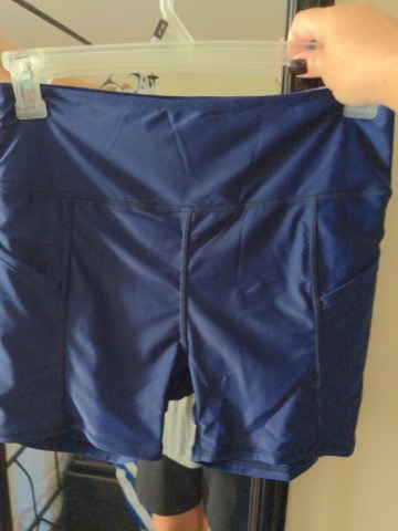 High Waisted Pocket Detail Navy Blue Swim Shorts