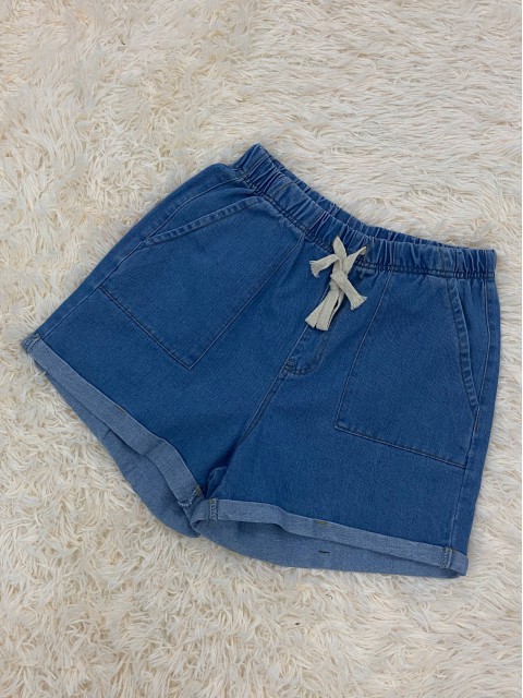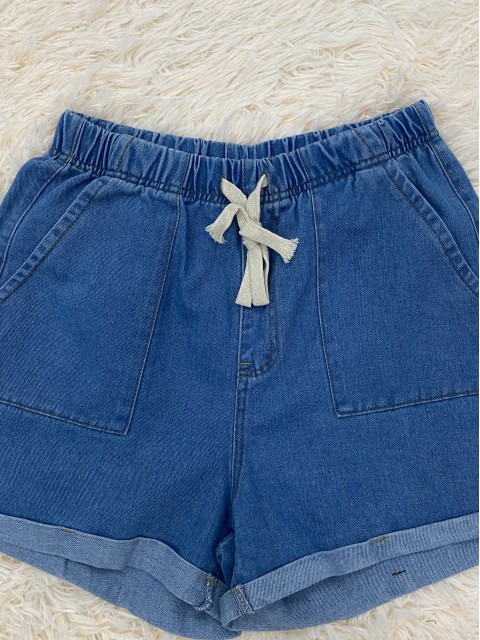 Denim Blue Skinny Elastic Waist High Waisted Shorts