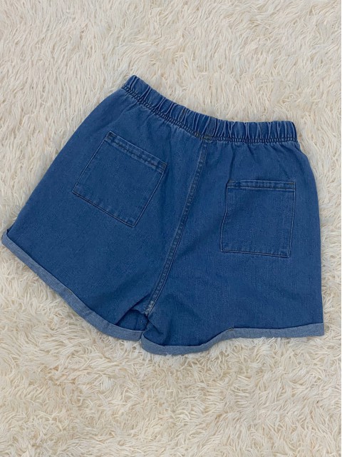 Denim Blue Straight Leg Button Fly High Waisted Shorts