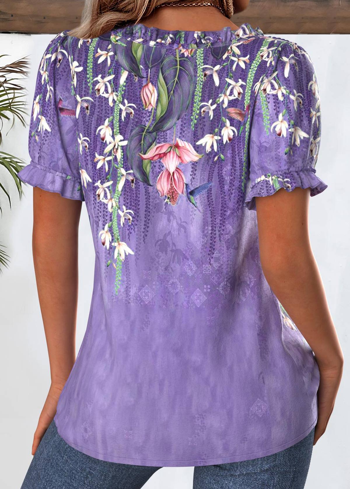 Dusty Pink Floral Print Frill Short Sleeve T Shirt