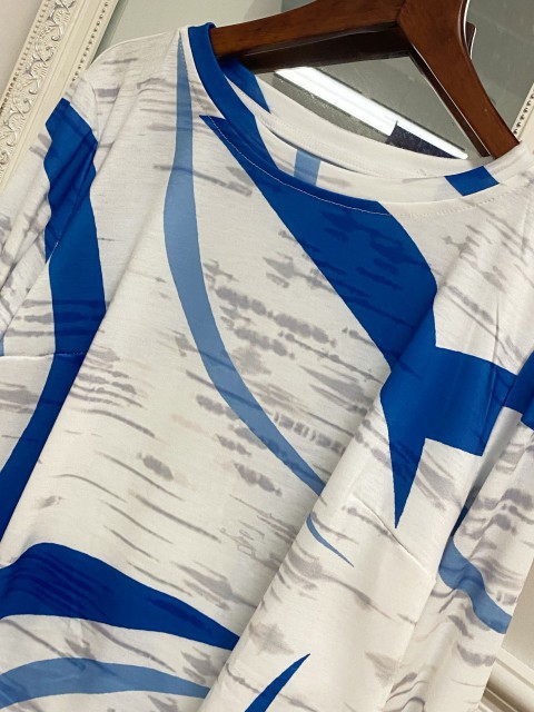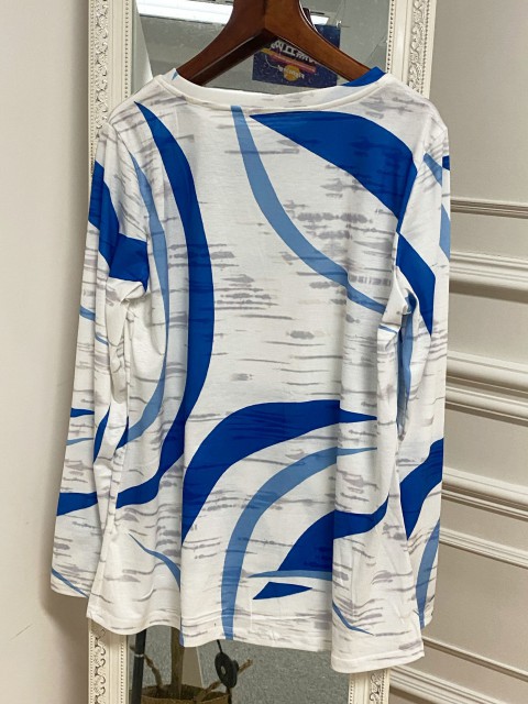 Peacock Blue Curved Hem Long Sleeve T Shirt