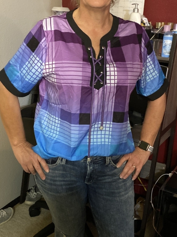 Light Blue Tummy Coverage Plaid Long Sleeve Blouse