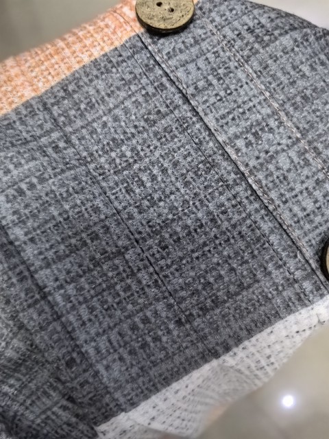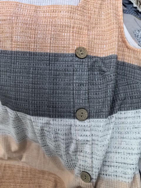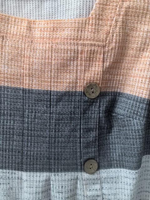 Orange Button Plaid Long Sleeve Round Neck Blouse