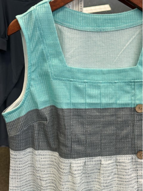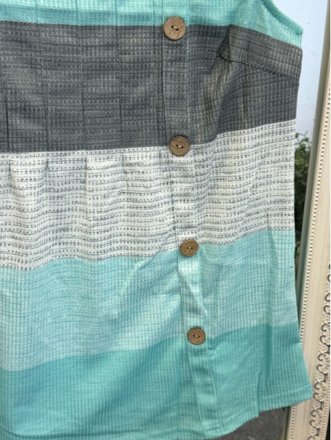 Dusty Blue Button Plants Print Strappy Tank Top