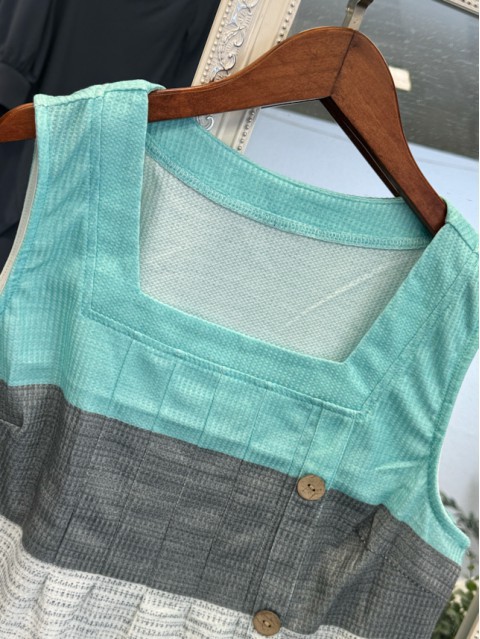 Light Yellow Button Ombre Sleeveless Square Neck Tank Top