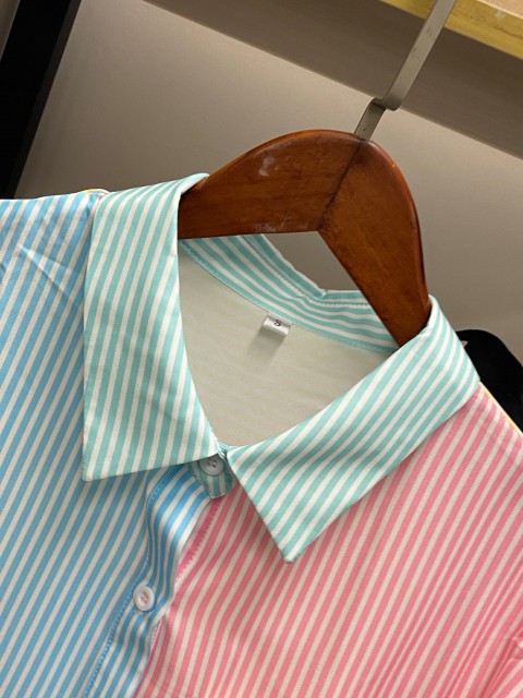 Multi Color Cross Hem Striped Short Sleeve T Shirt