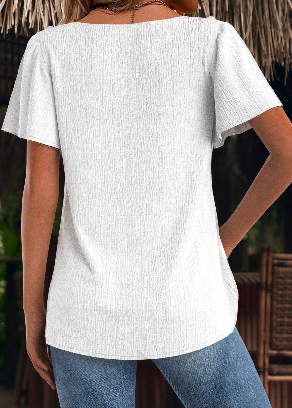 White Tuck Stitch Short Sleeve Round Neck T Shirt