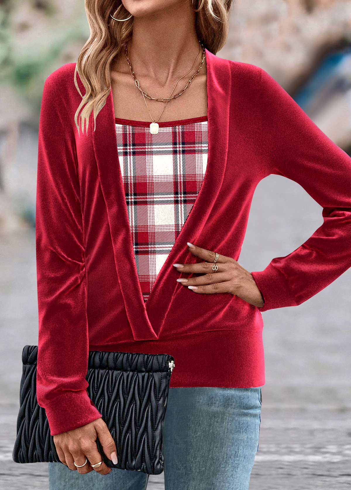 Light Blue Tummy Coverage Plaid Long Sleeve Sweatshirt