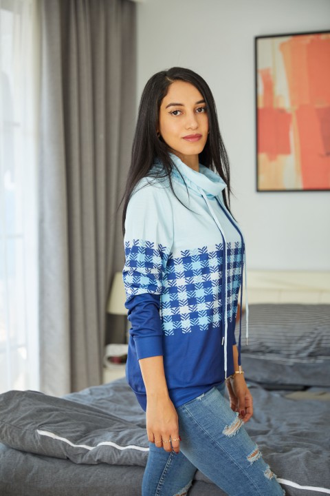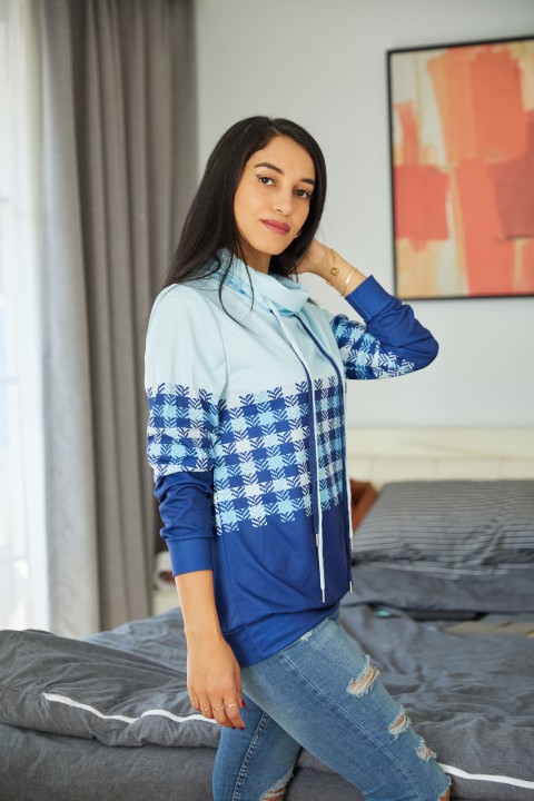 Dusty Blue Tummy Coverage Geometric Print Long Sleeve Sweatshirt