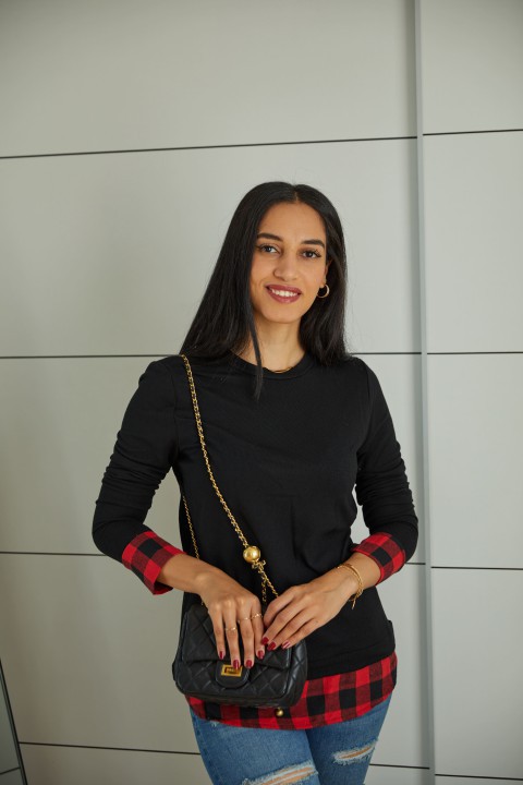 Grey Tuck Stitch Plaid Short Sleeve T Shirt