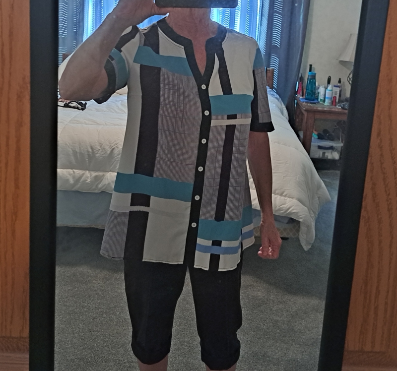 Black Zipper 3/4 Sleeve Split Neck Shirt