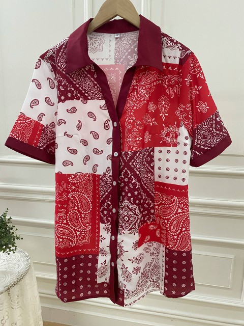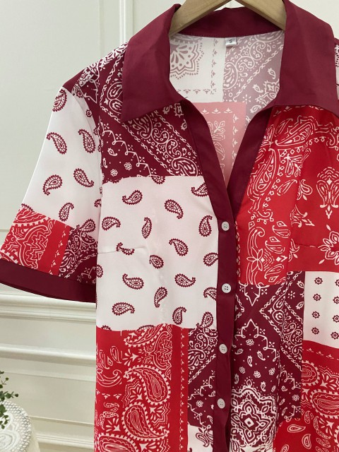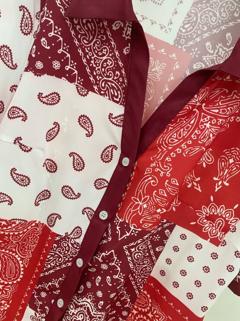 Wine Red Tummy Coverage Long Sleeve Split Neck Shirt