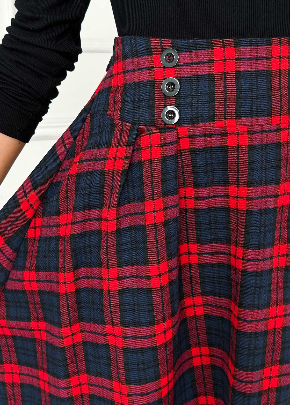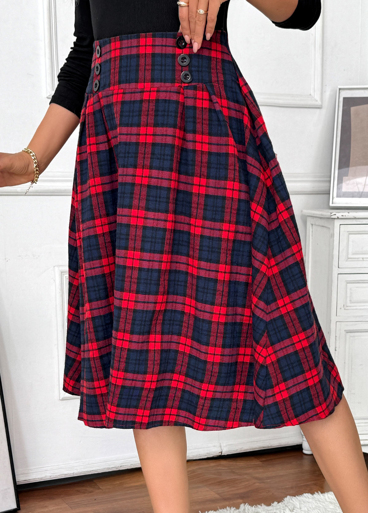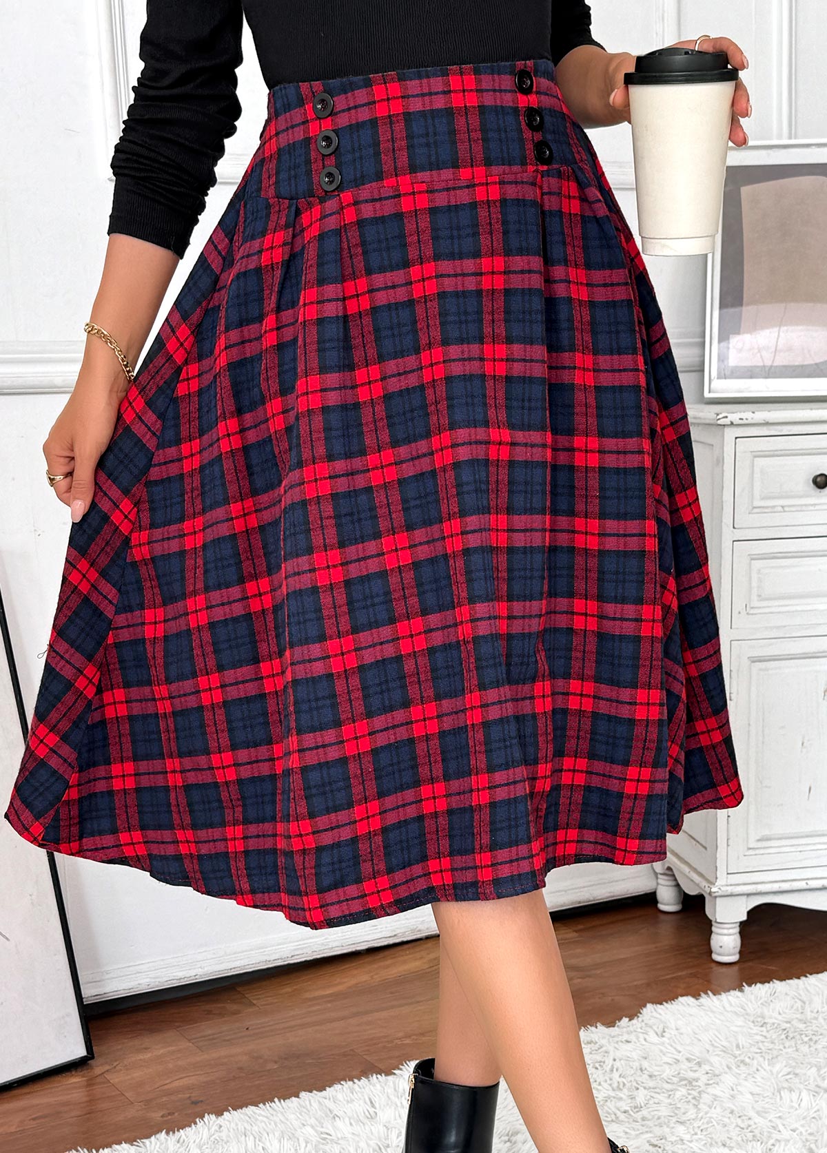 Home  /  Bottoms  /  Skirts  /  Red Plaid A Line Elastic Waist Skirt
