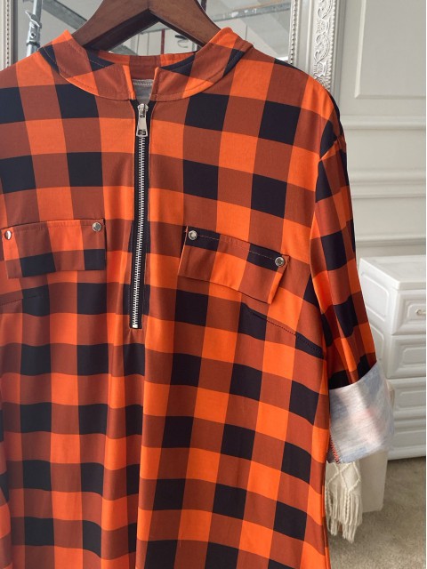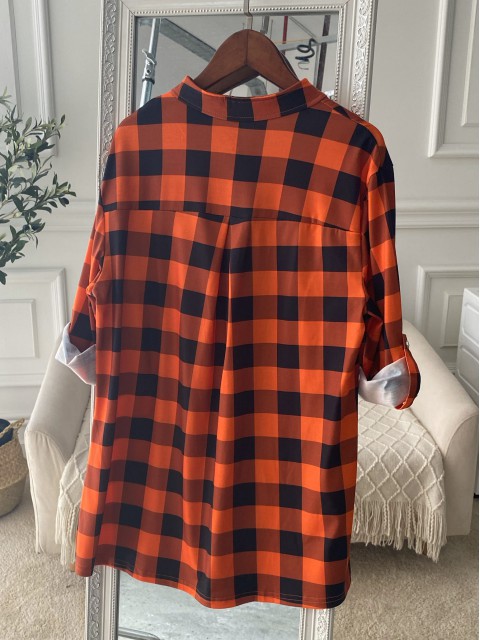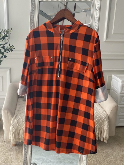 Light Camel Tummy Coverage Plaid Long Sleeve Sweatshirt